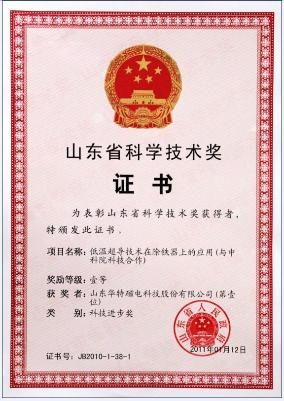 2月28日上午,山東省科學(xué)技術(shù)獎(jiǎng)勵(lì)大會(huì)在濟(jì)南召開,表彰我省科技事業(yè)發(fā)展和現(xiàn)代化建設(shè)作出突出貢獻(xiàn)的科技工作者。省委書記、省人大常委會(huì)主任姜異康,省委副書記、省長(zhǎng)姜大明等省委、省政府領(lǐng)導(dǎo)出席會(huì)議并為獲獎(jiǎng)?wù)叽眍C發(fā)獲獎(jiǎng)證書。我公司與中科院高能物理所合作研發(fā)的“低溫超導(dǎo)技術(shù)在除鐵器上的應(yīng)用”榮獲山東省科技進(jìn)步獎(jiǎng)一等獎(jiǎng)并受到表彰。